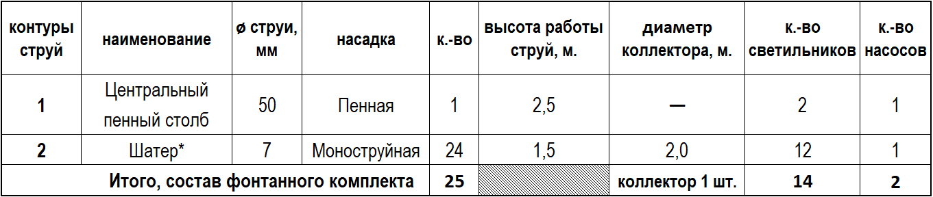 ОПИСАНИЕ ФОНТАННОГО КОМПЛЕКТА ПО КОНТУРАМ