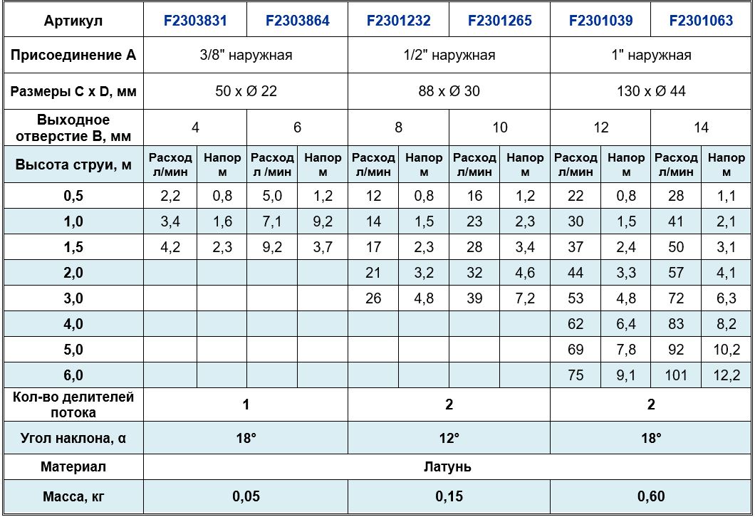 Фонтанная насадка Lance jet flow adjustable 1", 12 мм