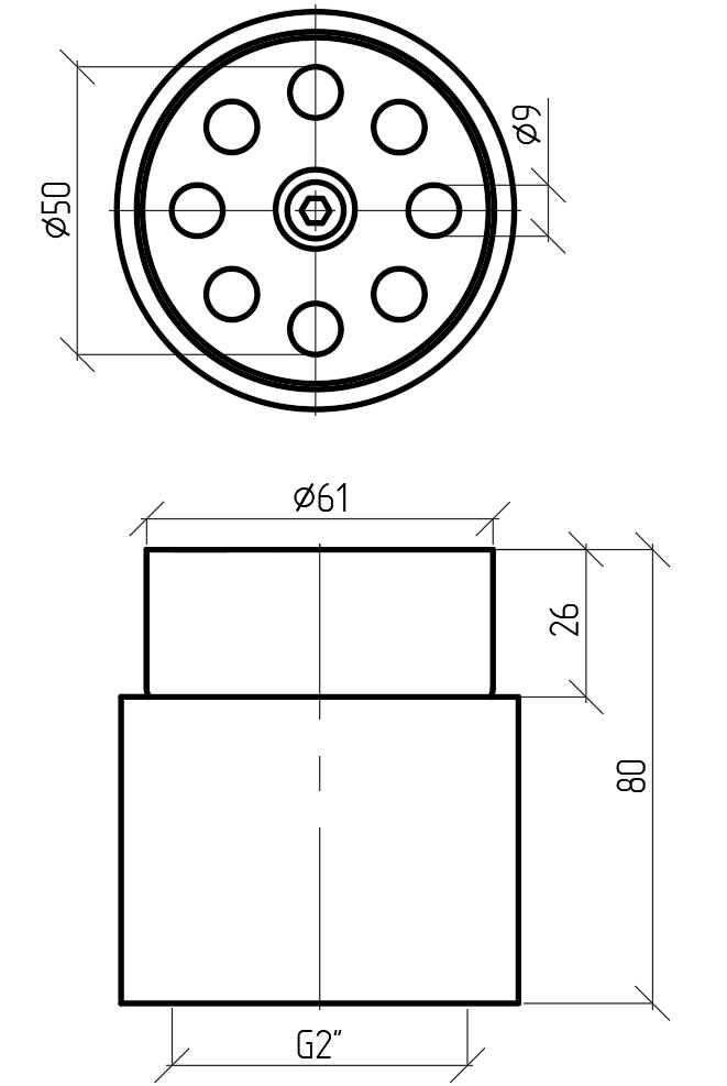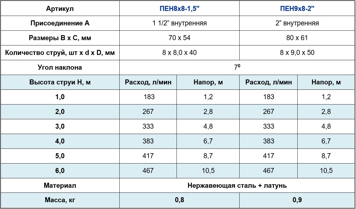 Насадка пенная многоструйная, 9ммх8шт, 2", нерж сталь AISI316